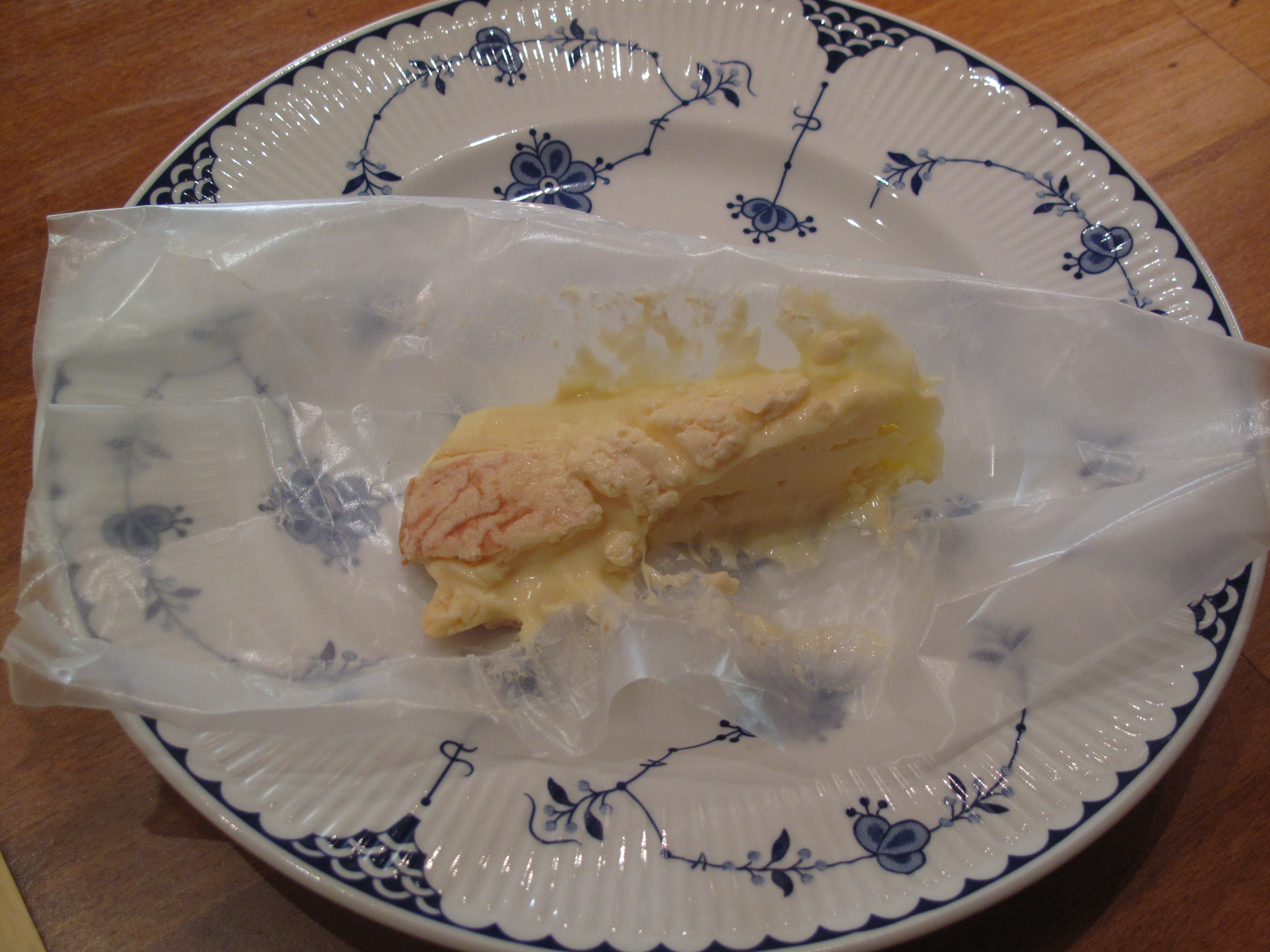 I digress. The cheese-man wrapped my little piece of Burwash Rose up and I took it home. Here it is:
