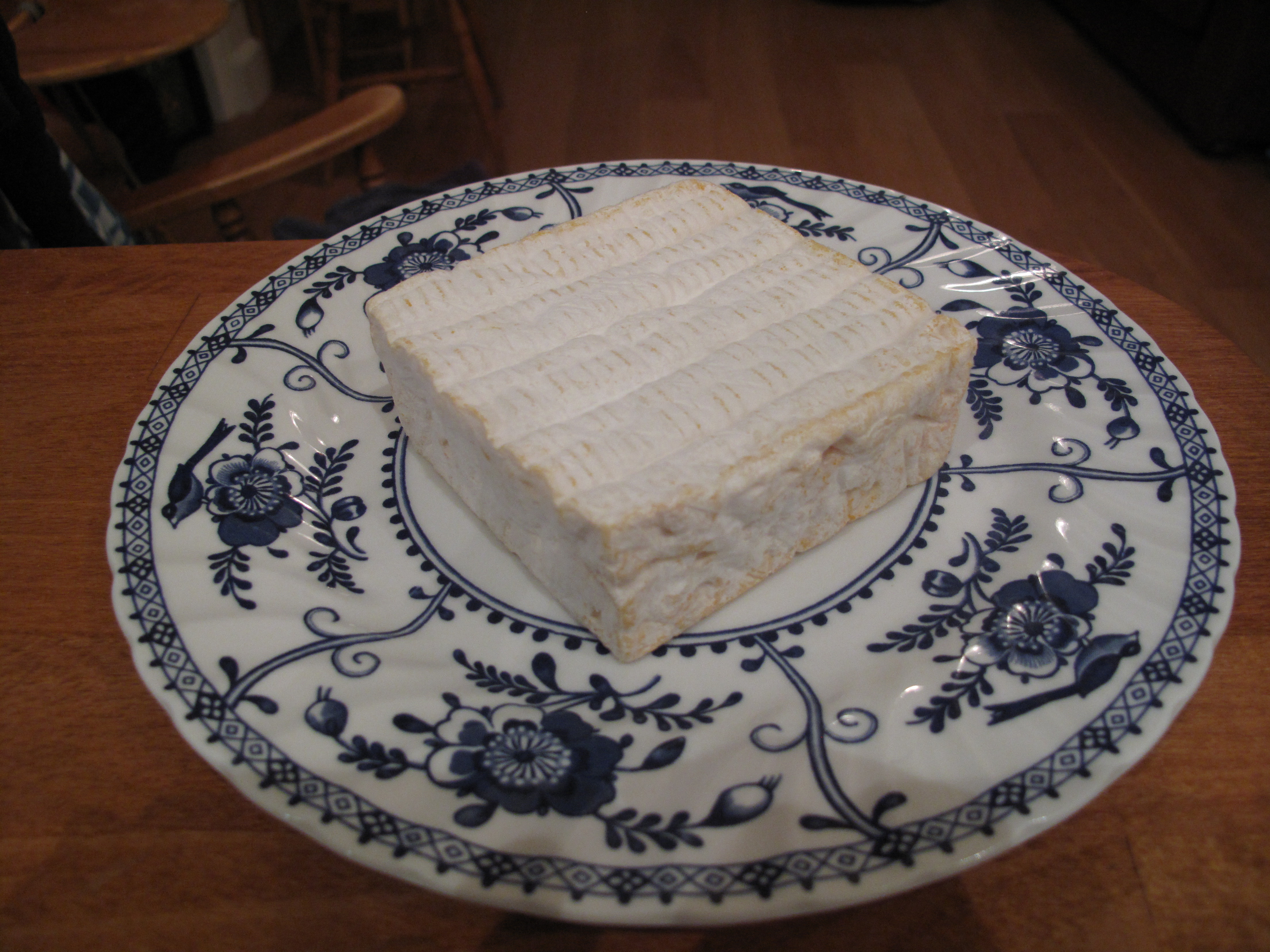 Pont L’Évêque is a soft cheese made from raw cow’s milk. Here is it, a fine-looking cheese that can even stand up to my attempts at food photography.