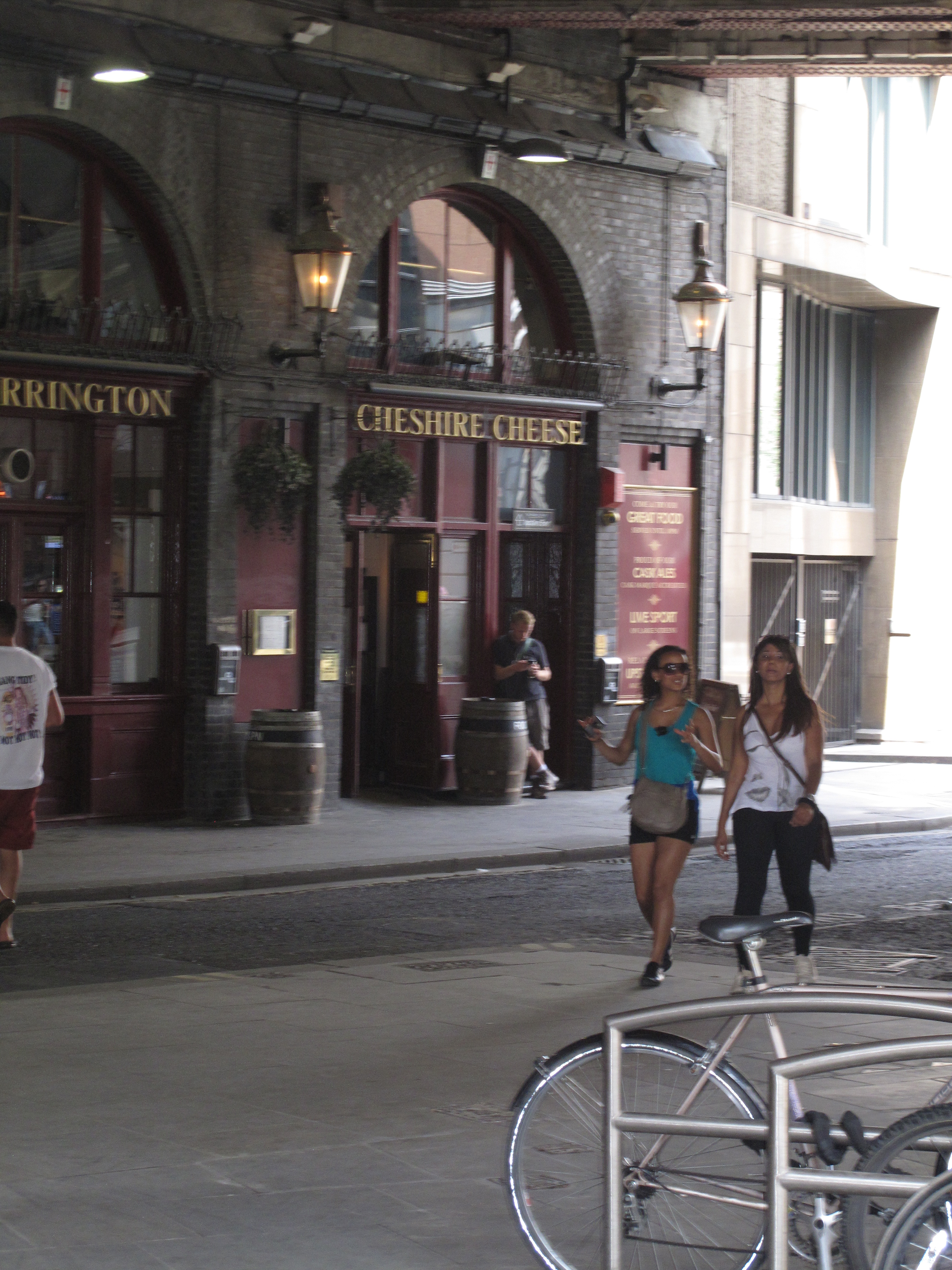 I won’t spoil the secrets of the Walk for future venturers, suffice to say that it included cheese comedy and tragedy, cheese art and architecture and cheese amidst death and disaster (gasp!) And lots of cheese-eating. Cheese at every turn, it seemed. Cheshire cheese, Red Leicester, Stilton, Parmesan…eating cheese in the searing heat had felt like a bad idea but, once we got going, it made perfect sense, especially as each cheese neatly illustrated one of Henry’s tall turo-tales. It helped that it was all great quality cheese; nothing you’d sacrifice to a mousetrap here. The only chucking away of cheese was at our own cheese-rolling competition, fiercely contended in front of a bemused audience of Saturday afternoon drinkers at – you guessed it – Ye Olde Cheshire Cheese.