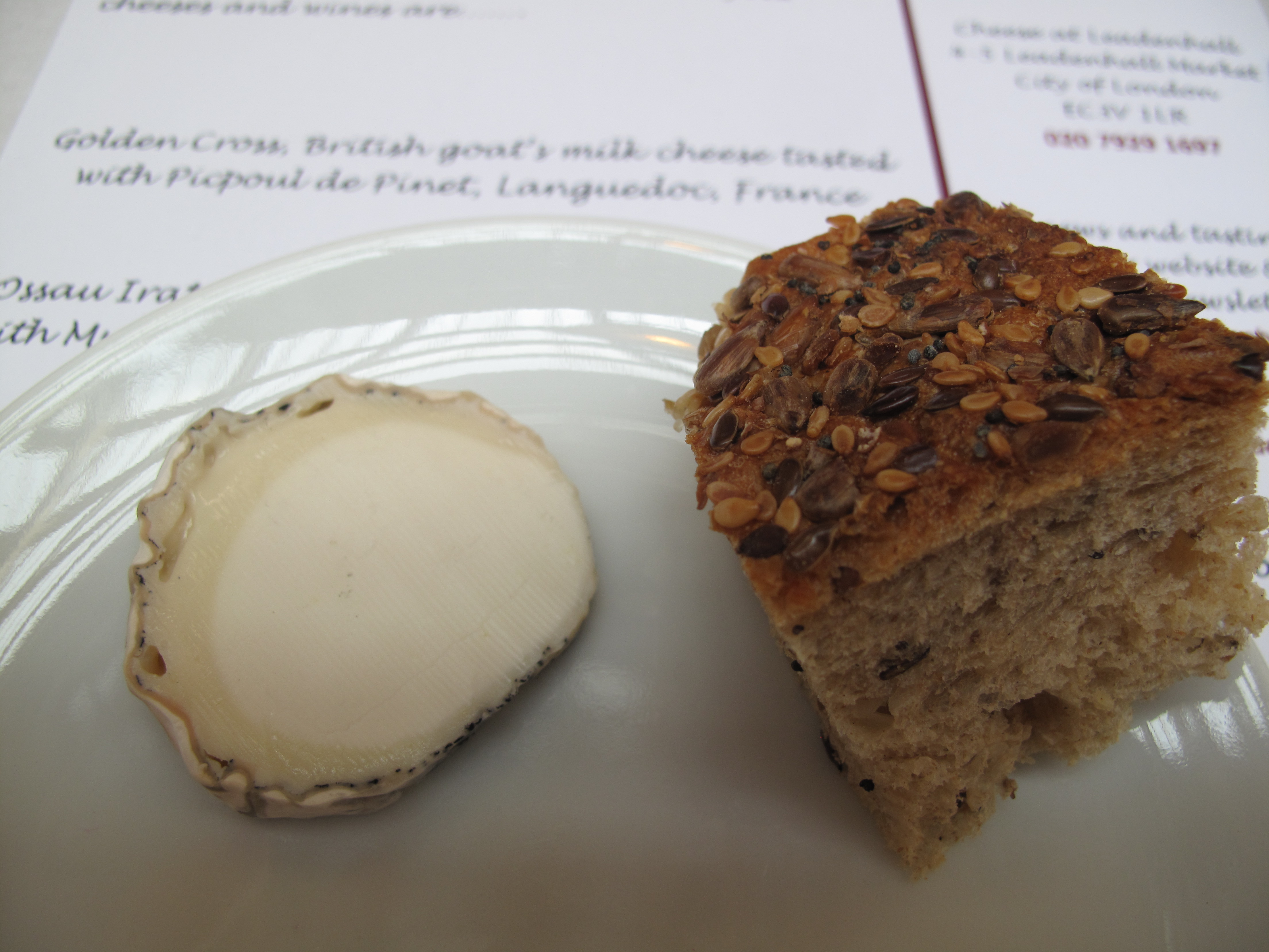Golden Cross is an unpasteurised, mould-ripened goat’s milk cheese made on Greenacres Farm near Lewes. It tasted creamy and fresh, a little bit goaty but not over-powering and everyone around me seemed to enjoy it.
