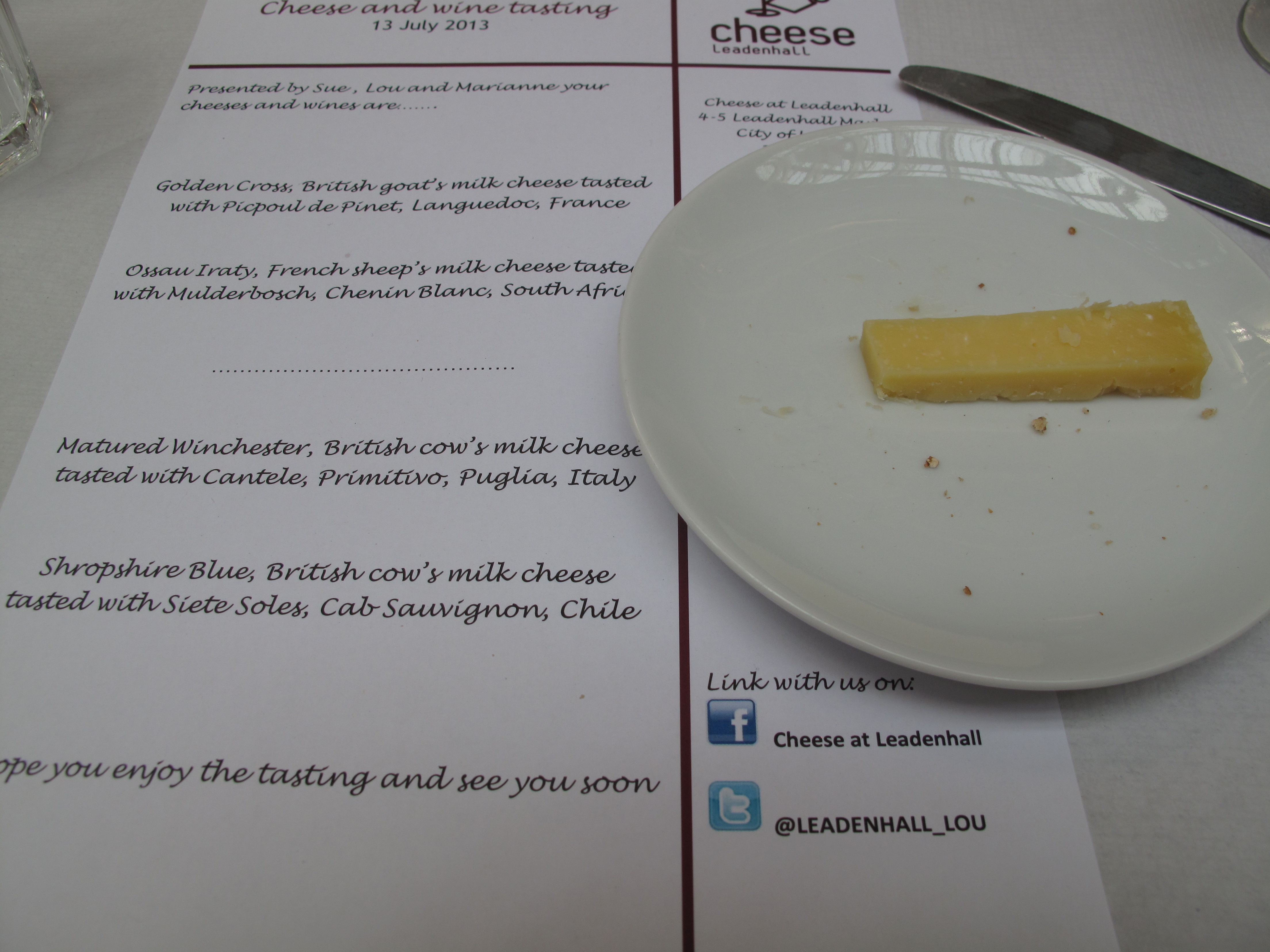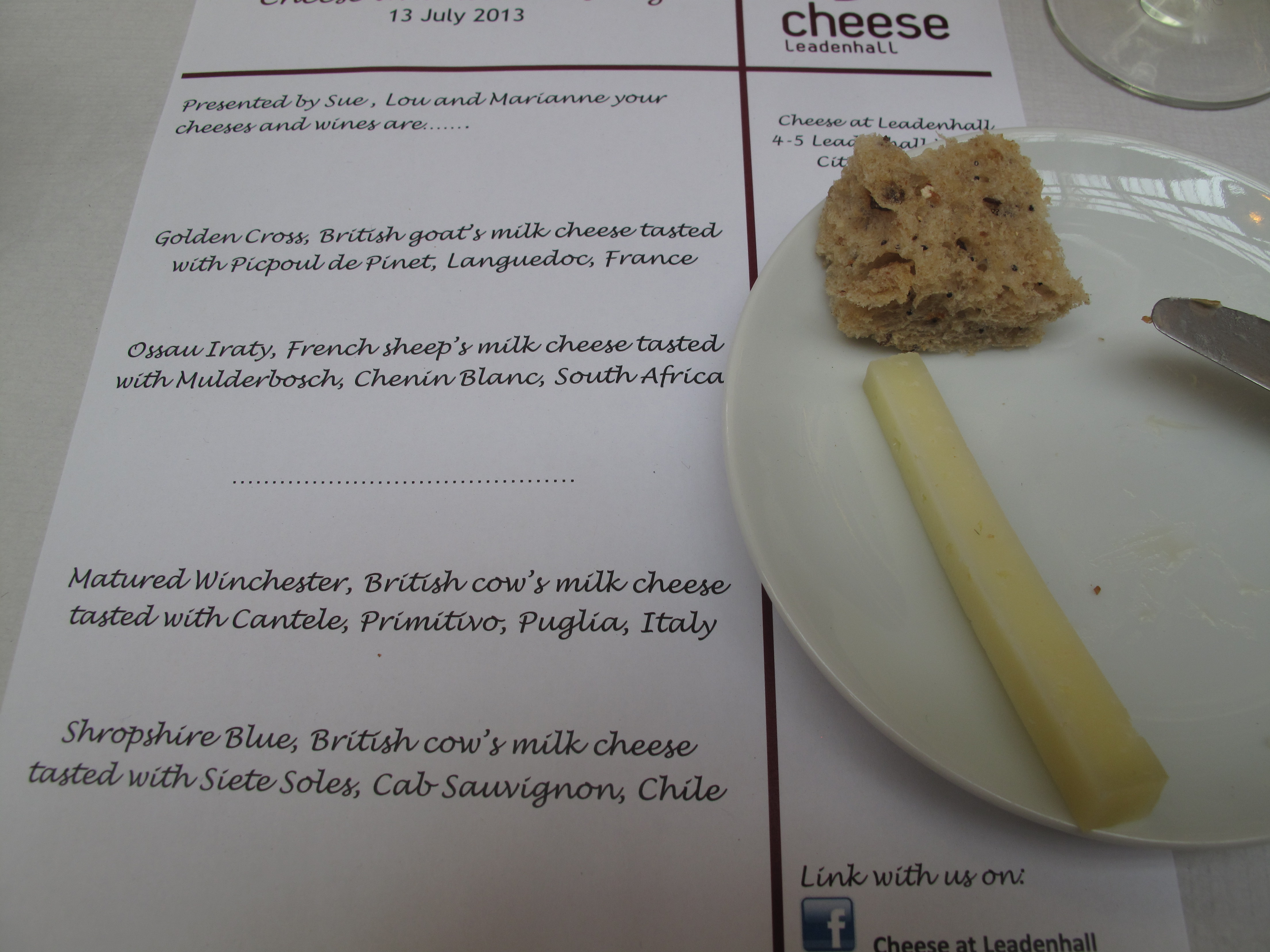 An hour later and back at the Cheese at Leadenhall, the cheese and wine tasting proper began.