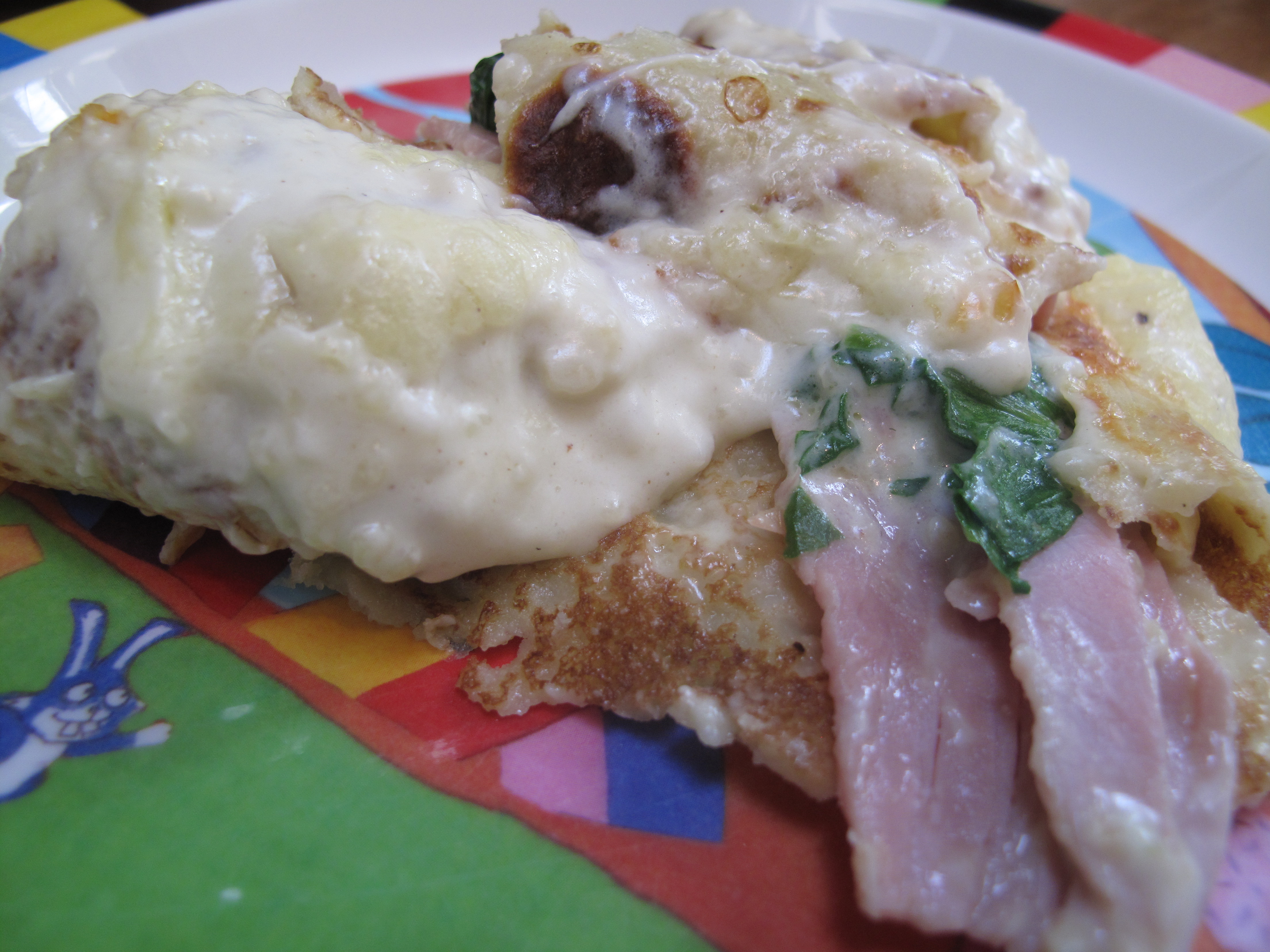 18 responses to “Baked Cheese, Ham and Spinach Pancakes