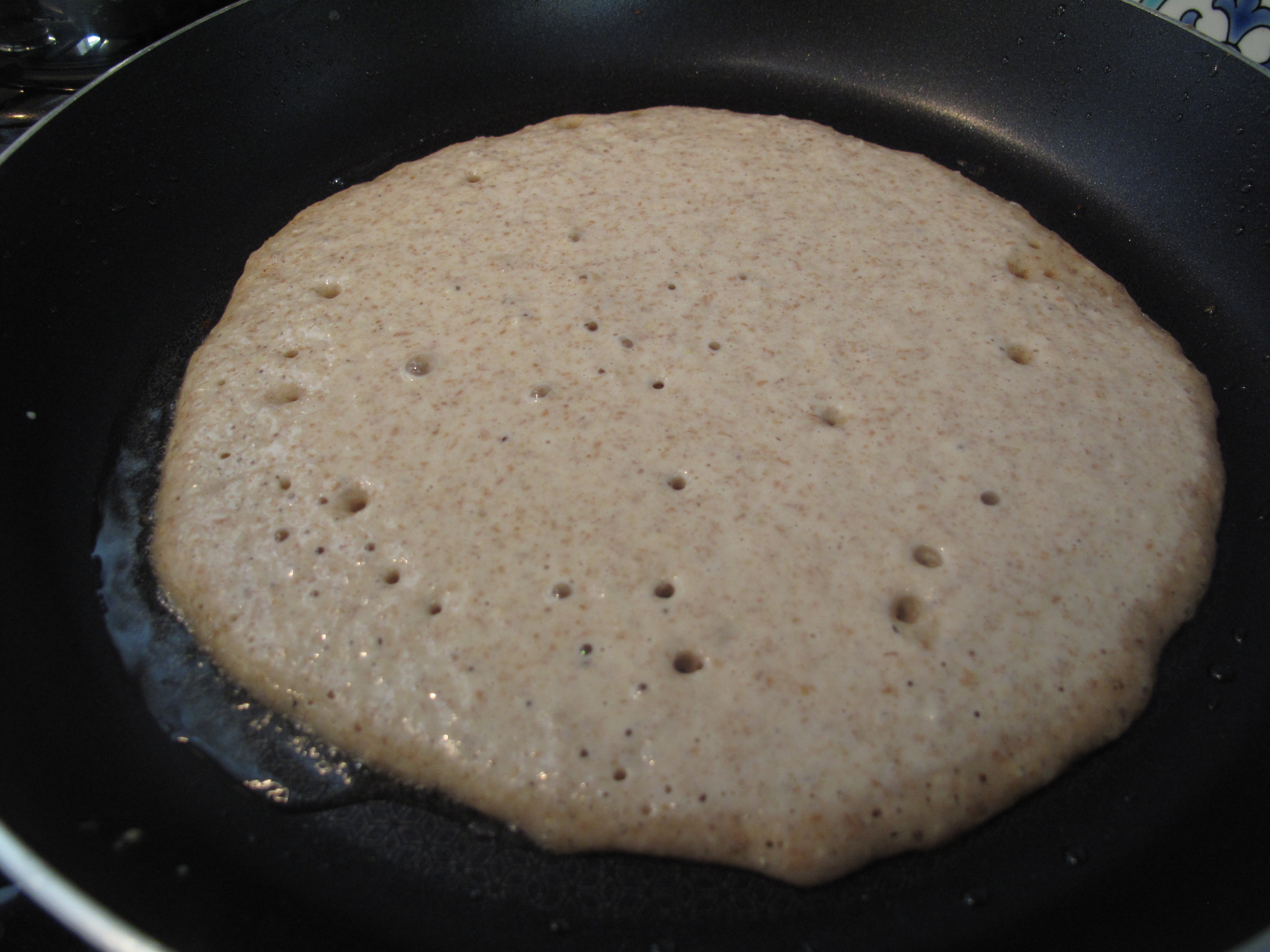 Heat some oil in a frying pan or on a griddle. As soon as it starts to smoke, add a ladleful of the batter and tilt the pan around and around so it spreads to make a pancake of about 18-20cm.