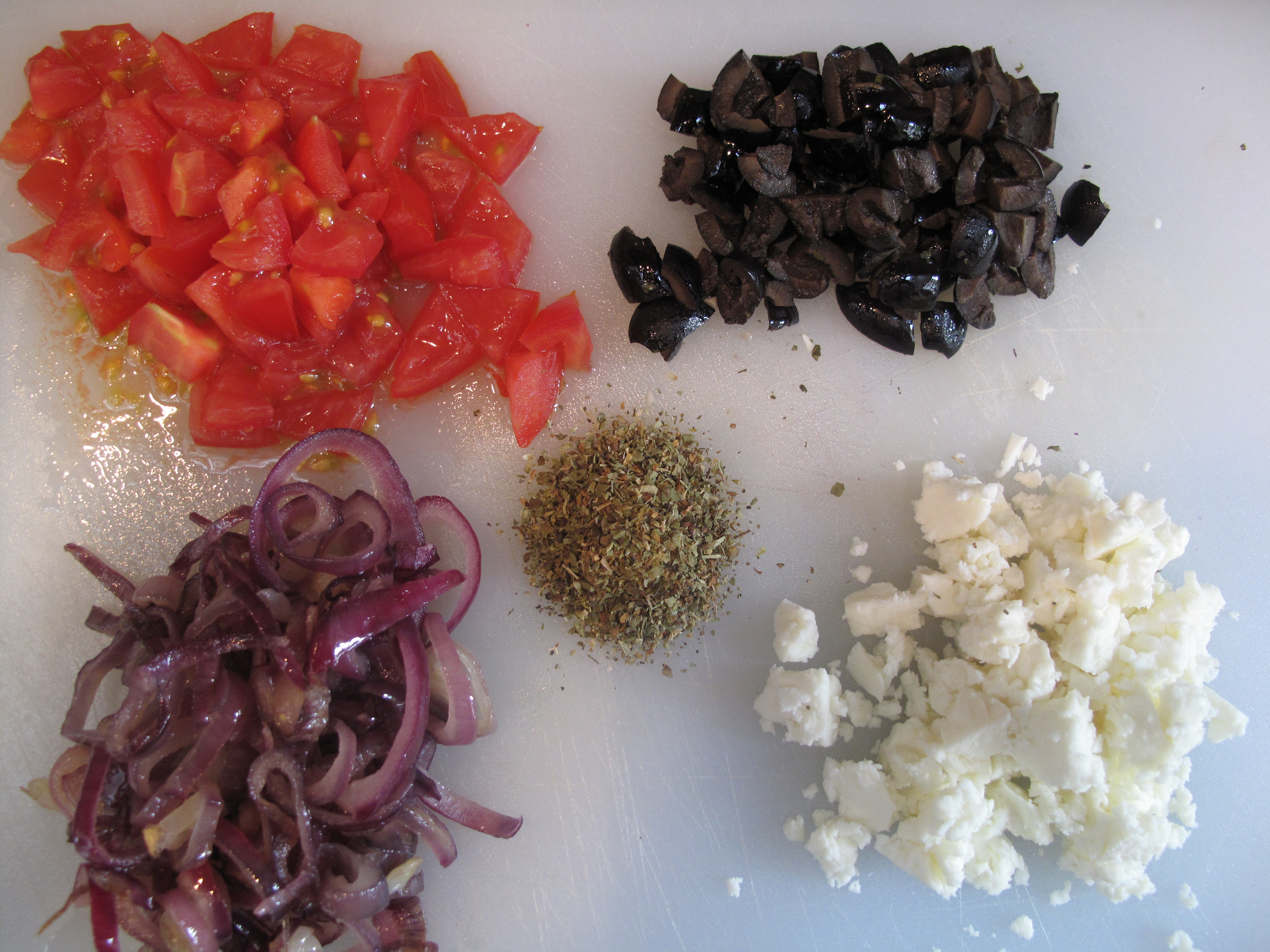 So the inspiration for these tarts is Greek Salad. They are traditionally made with tomatoes, black olives, cucumber, Feta cheese, oregano and olive oil. I’m not a fan of cooking cucumbers (is anyone?) so left them out but the other ingredients are all included. An ouzo chaser is optional.