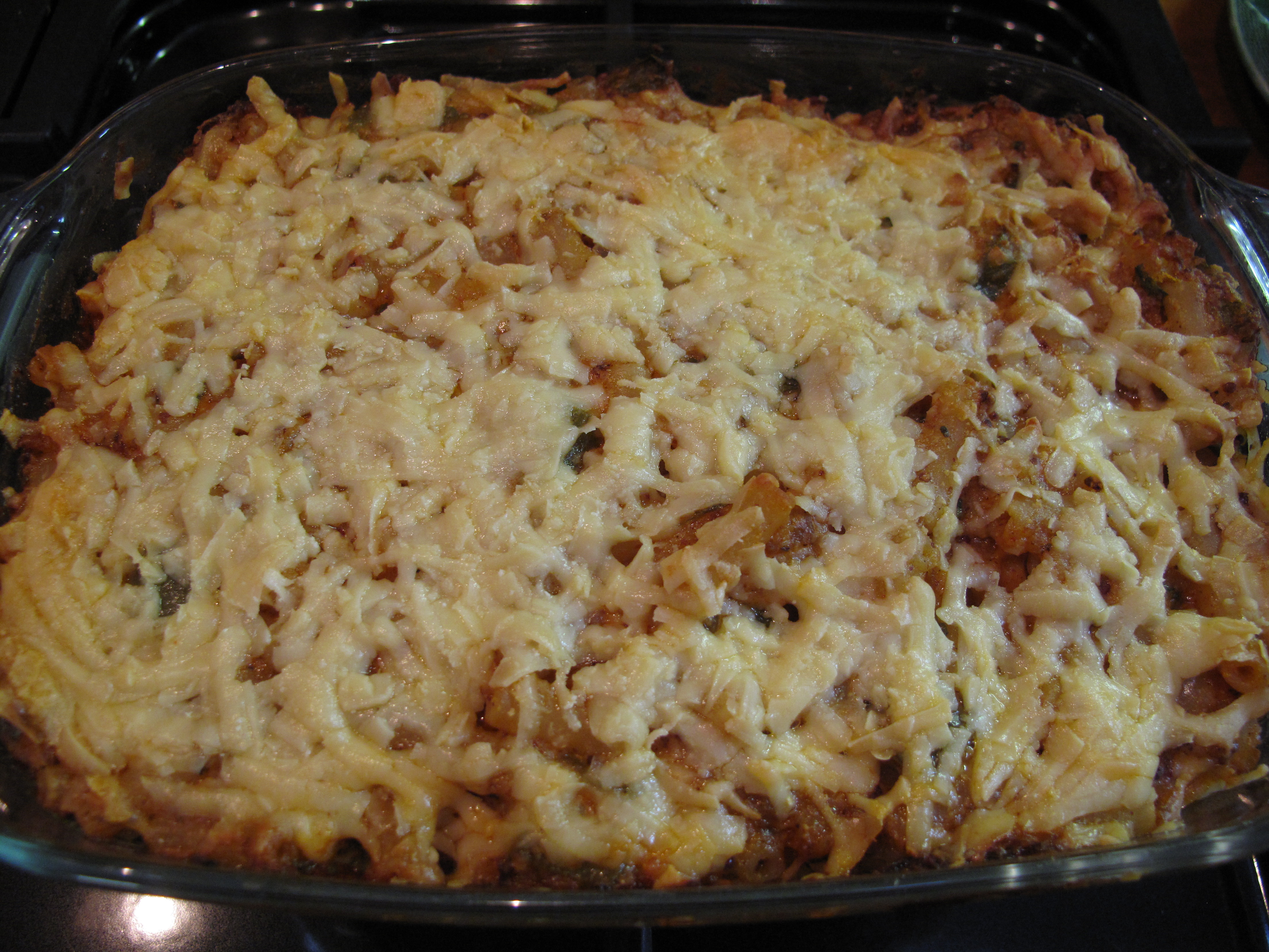 Pour the mixture into an ovenproof dish and sprinkle more cheese on the top. Bake for 20-25 minutes until the cheese is golden and bubbling.