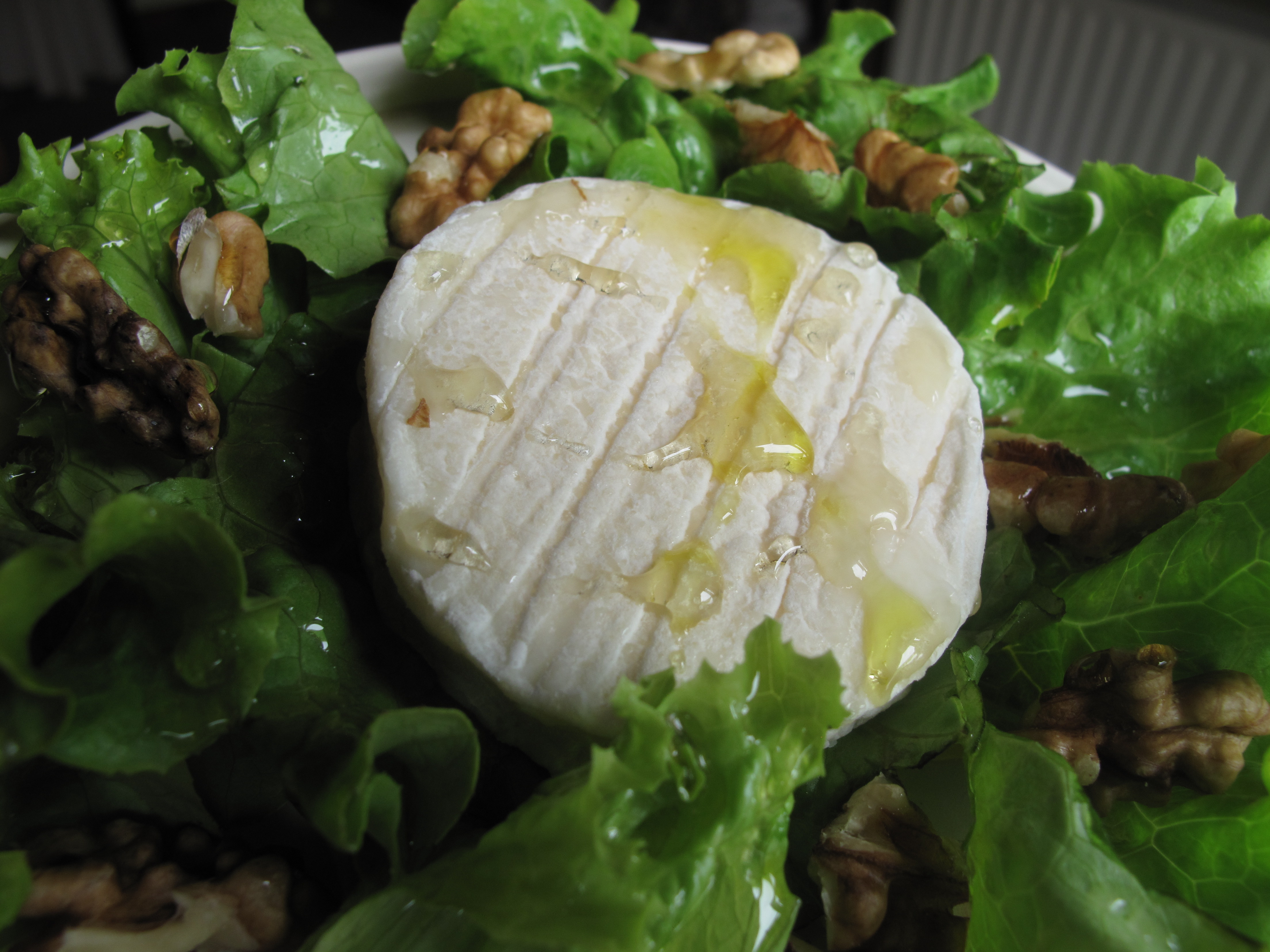 Here’s how we ate the Rocamadour; with a little salad, some walnuts and a drizzle of honey: