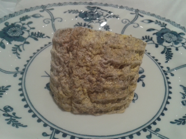 Millstone is unpressed and left to mature for at least three to four months, during which time it develops its distinctive yellow-grey rind (which is really quite tough compared to a lot of rinds). Left to mature for longer, it becomes similar to a Manchego in taste and texture. It’s a nice-tasting cheese, subtle, sweet and a little bit crumbly at first and a bit more sheepy-tasting after a few days (not in an unpleasant way, just a bit of a fleecy sort of tang). And the rind? Well, I must admit that even for a seasoned rind-gobbler such as myself, Millstone defeated me.