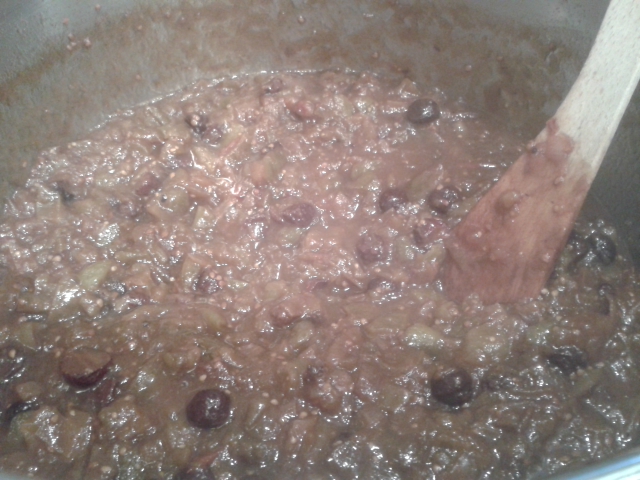 This is the first recipe I’ve posted on this blog that doesn’t contain cheese but I can pretty much assure you that it may not have cheese in it but it will certainly have cheese on it, under it and with it! The tartness of the green tomatoes combines with the sweetness of the apples and red onions and the spices to make a delicious, almost sweet and sour, flavour that goes perfectly with a tangy farmhouse cheddar.