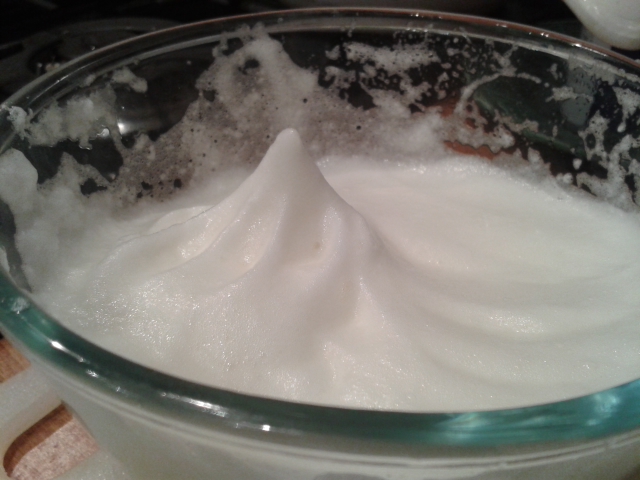 Whisk the egg whites until stiff and shiny then gradually fold them into the cheese mixture (the mixture should look bubbly if the egg whites are stiff enough).