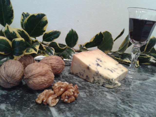 It’s rather classy, dontcha think? I was worried that marble would remind me of tombstones but like so many materials with multiple uses, I didn’t feel like that at all once I started using it. Thank you, Marbletree, I like it a lot and I’m sure it will be put to a great deal of good use – starting right here, as it shows off the ingredients for Belvoir Crumpets – Stilton, port and walnuts.