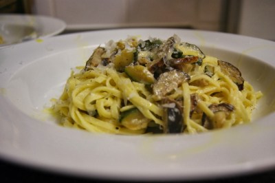 It’s two for the price of one from Easy Italian Cuisine who shares a simple pasta supper dish with her Pasta with Ricotta, Zucchini and Parmesan