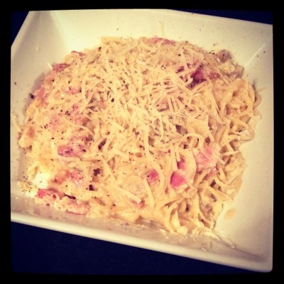 There’s nothing like cheese and pasta for when you need warming up and filling up and Kick at the Pantry Door hit the spot with Spaghetti Carbonara, an oldie but always a goodie.