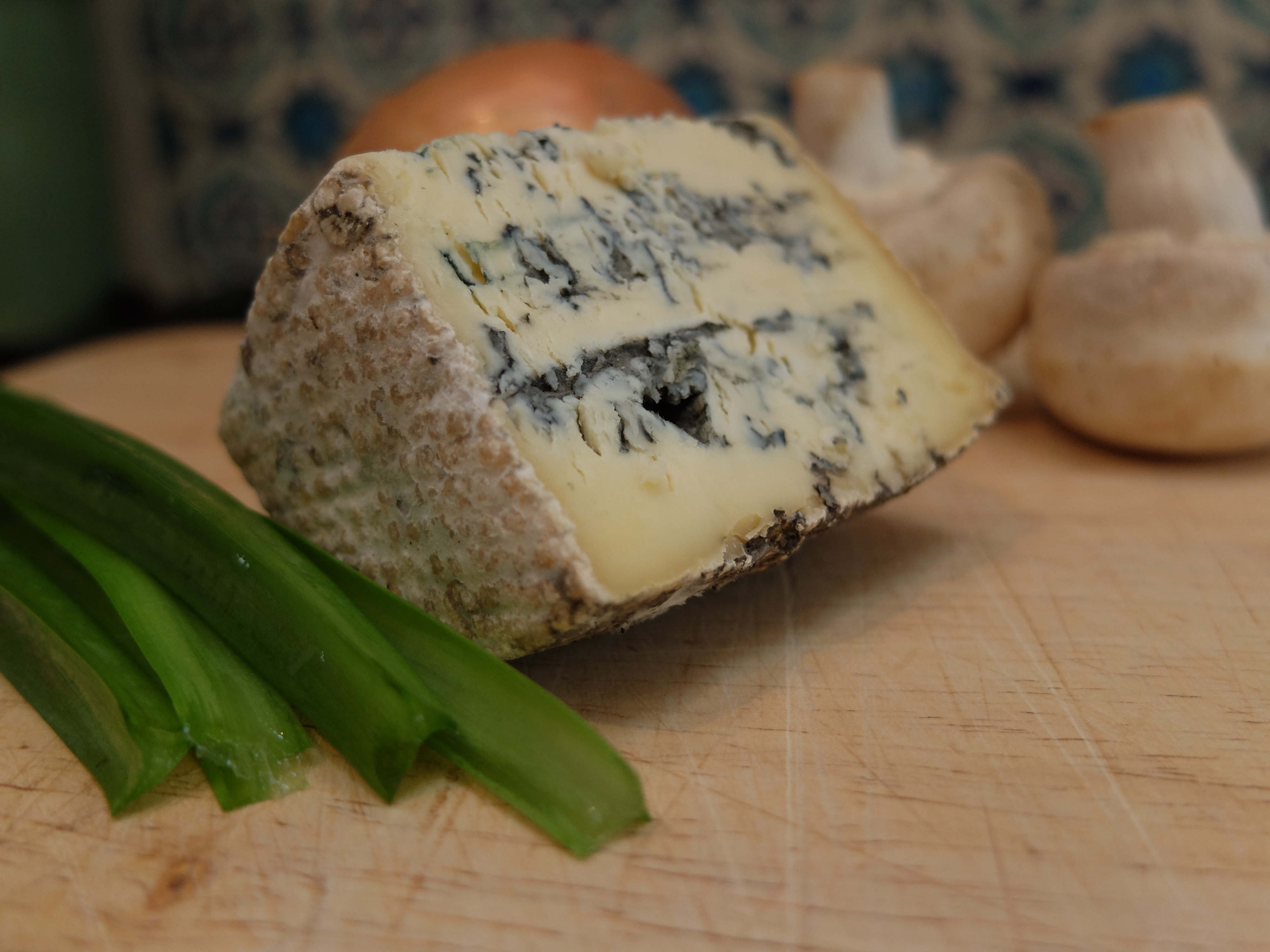 And what better to pair with a wild leek than a wild Welsh cheese? Perl Las means ‘blue pearl’ and it’s a pasteurised, blue, cow’s milk cheese made by Caws Cenarth near Cardigan in Wales (who also make Perl Wen). It’s an enigma of a blue cheese; creamy and mellow but with a punch that creeps up on you. Blue cheese and mushrooms are always a great match as, of course, are mushrooms and garlic. I even made my own pastry again. Oh yes.
