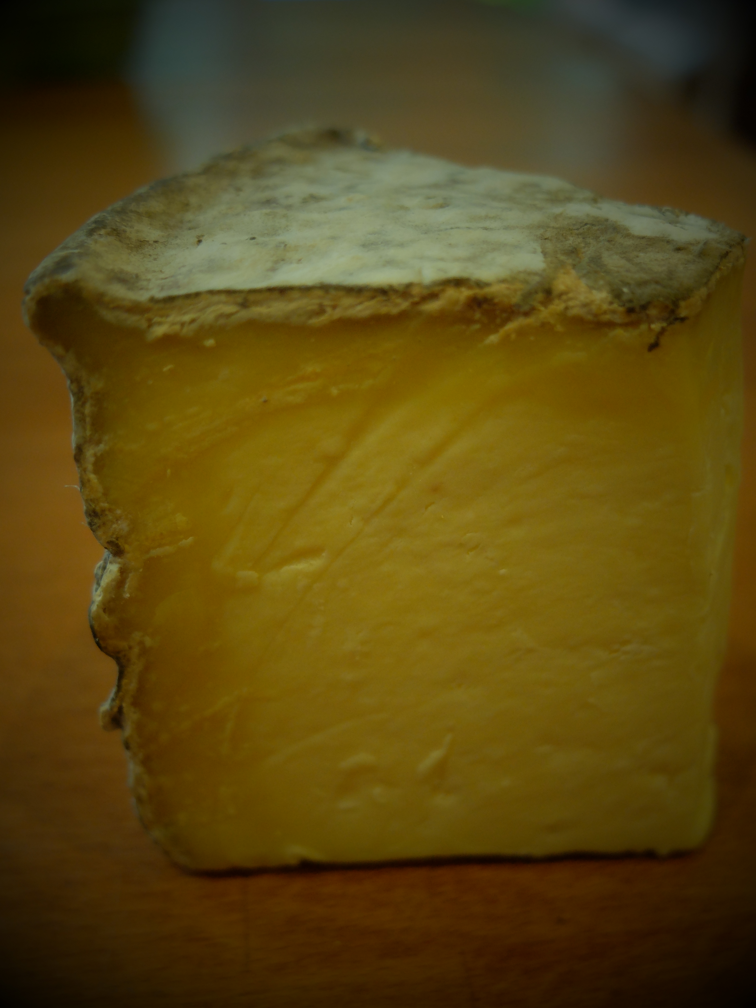 I plumped for Gorwydd Caerphilly, which I’ve written about before; it was one of the first British cheeses that I wrote about and which made me realise the renaissance that had happened in British cheese-making in the last couple of decades. If you still imagine Caerphilly cheese to be white, crumbly and acidic, then this is the cheese that will change your mind. Drool: