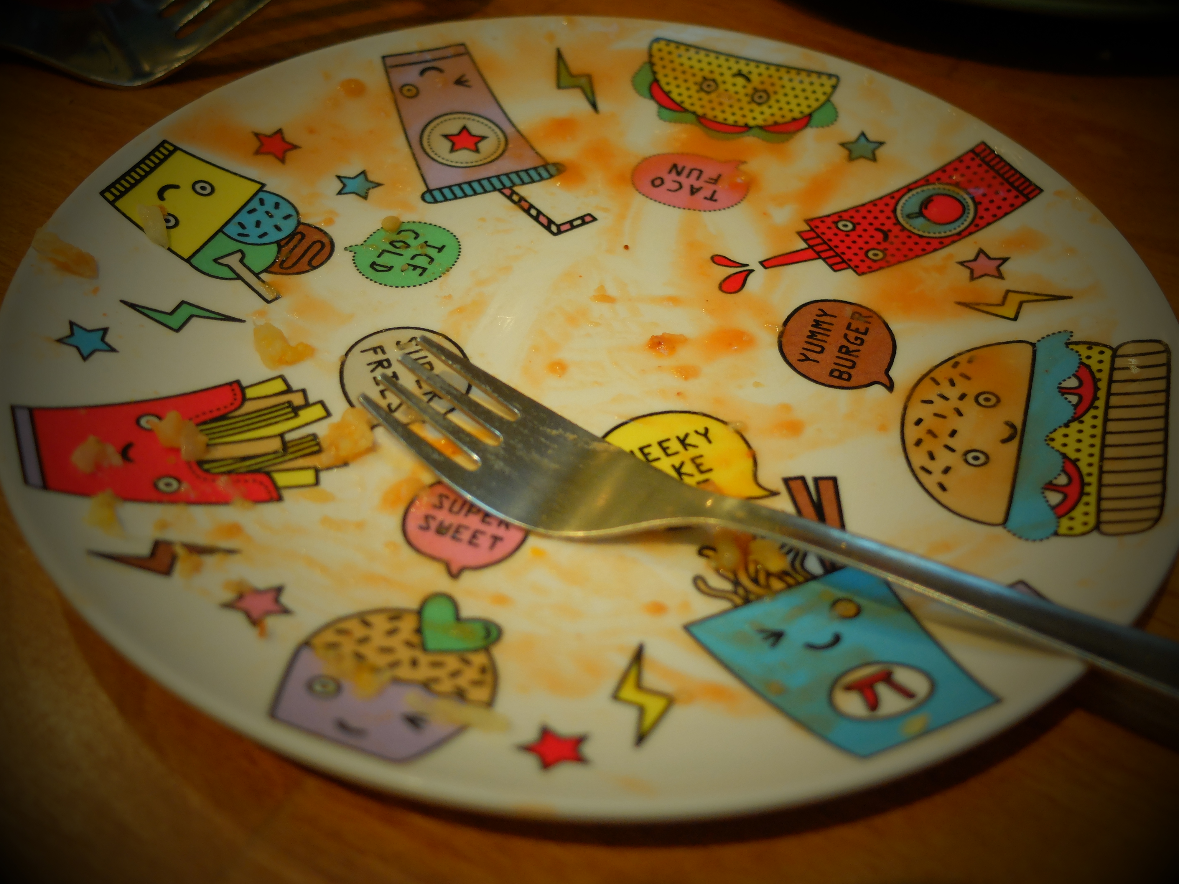 So, did they pass muster? Well, the eldest was offended by the egginess but otherwise liked them. But the biggest success was with the youngest, who can usually spot and refuse a vegetable at fifty paces. Here is the result (served with baked beans rather than salad; I wasn’t going to push my luck):