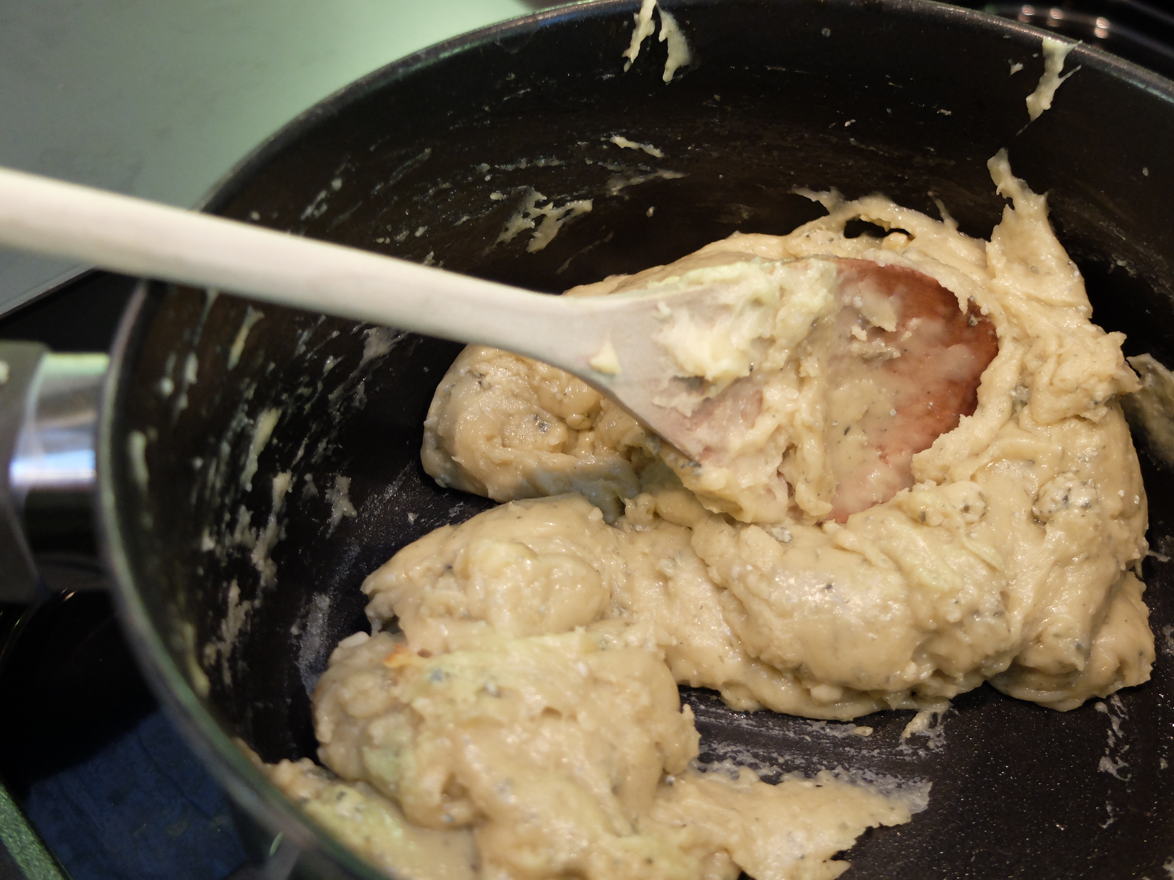 The problem (admittedly not a very serious problem) with buying lots of cheese in one go is that you suddenly have an awful lot of cheese to eat. ‘Stop it!’ wailed the Other Half last week. ‘Stop buying so much cheese, I have to stop eating so much cheese!’ Whilst the obvious retort would be ‘Well, stop eating so much cheese then’, I did have some sympathies and so, with a lunch visit from the in-laws on the horizon and a mammoth chunk of the bluest cheese in existence in the fridge, I decided to cook something up with it. Obviously by taking this approach we are still, in real terms, ‘eating so much cheese’, but it doesn’t feel like it. A bit like when you eat the whole box of chocolates at once and therefore consume less calories than if you ate three a day for the next fortnight. Honestly.