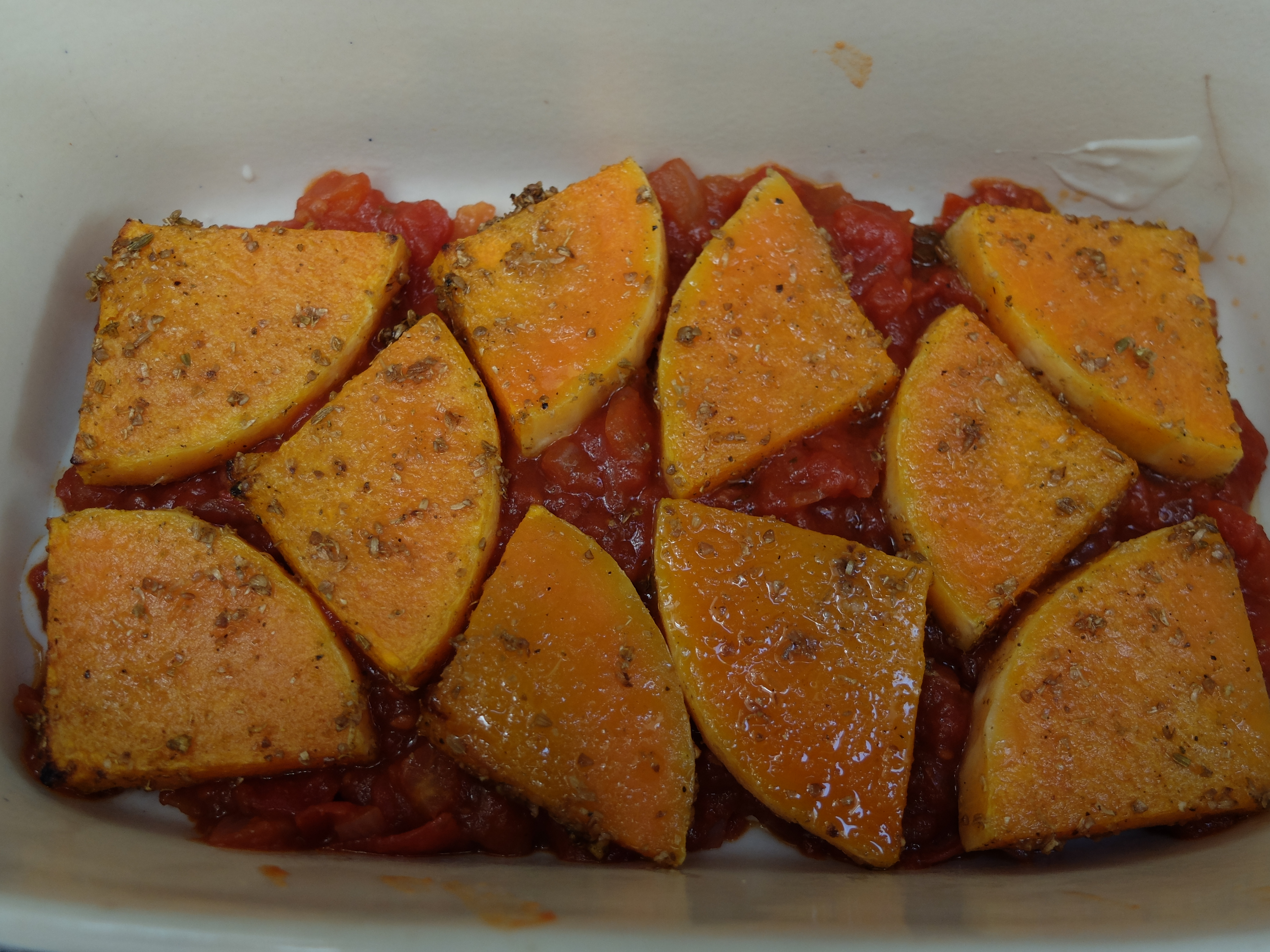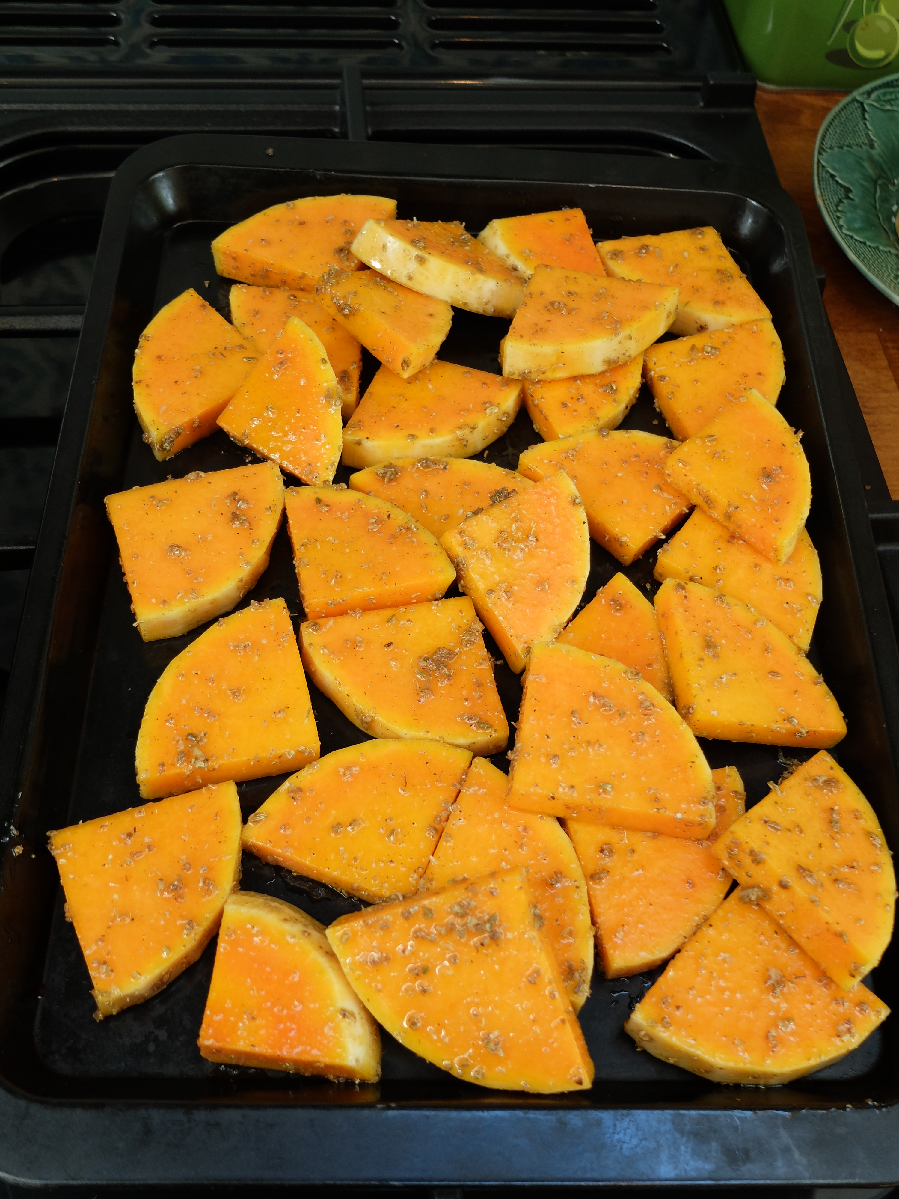 Coat the squash slices in the oily spicy mixture, place them on a baking tray and cook for about 20 minutes or until the squash is soft.