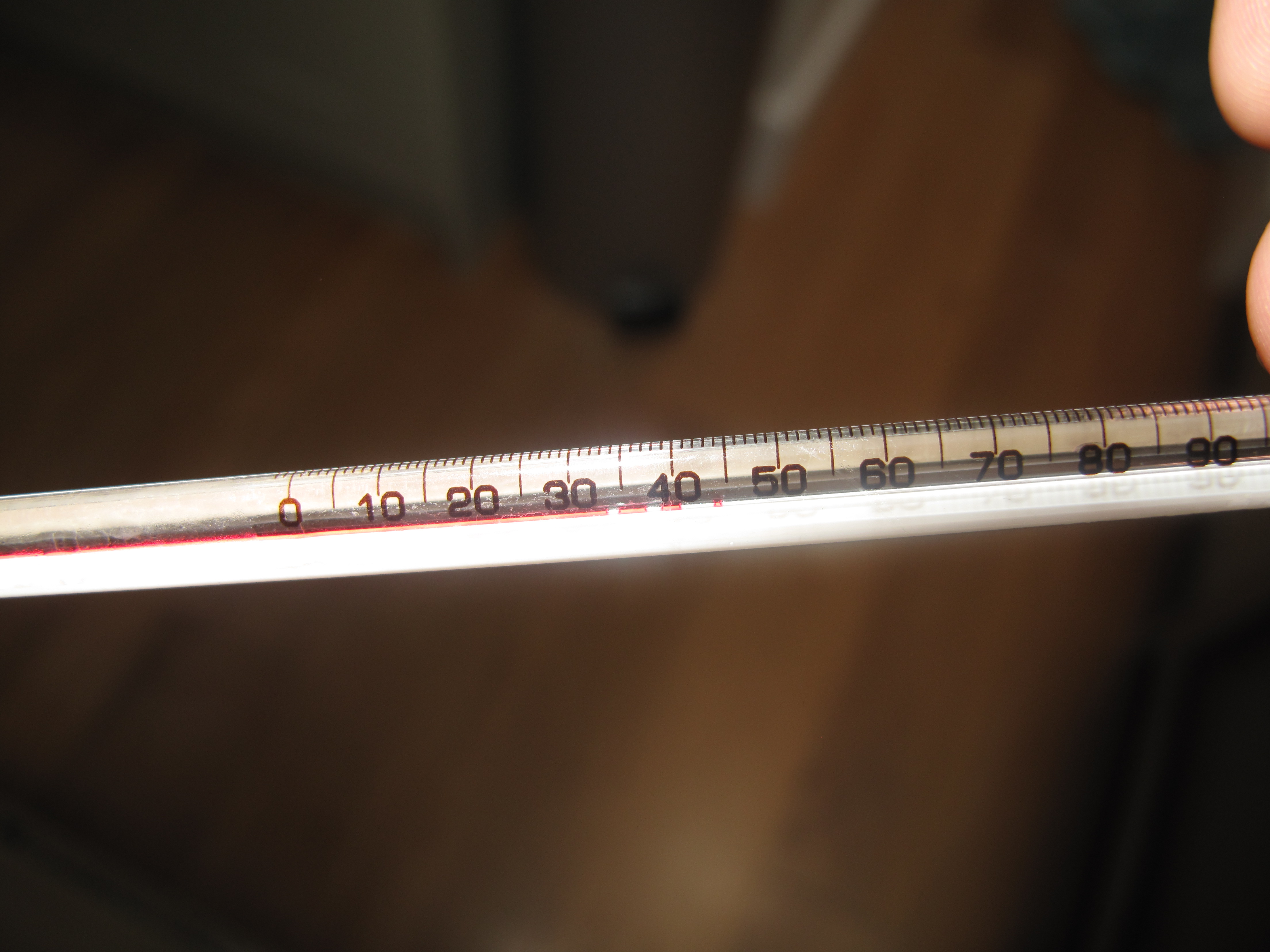 However, as anyone who has followed my previous cheese-making adventures will know, I’m actually not very good at making cheese. I think I’m generally good at concentrating and fine details but the process of cheese-making takes things to a whole new level and seems to turn me into the world’s clumsiest fool. And so it was that, within the first few minutes, I dropped my thermometer and it looked like this: